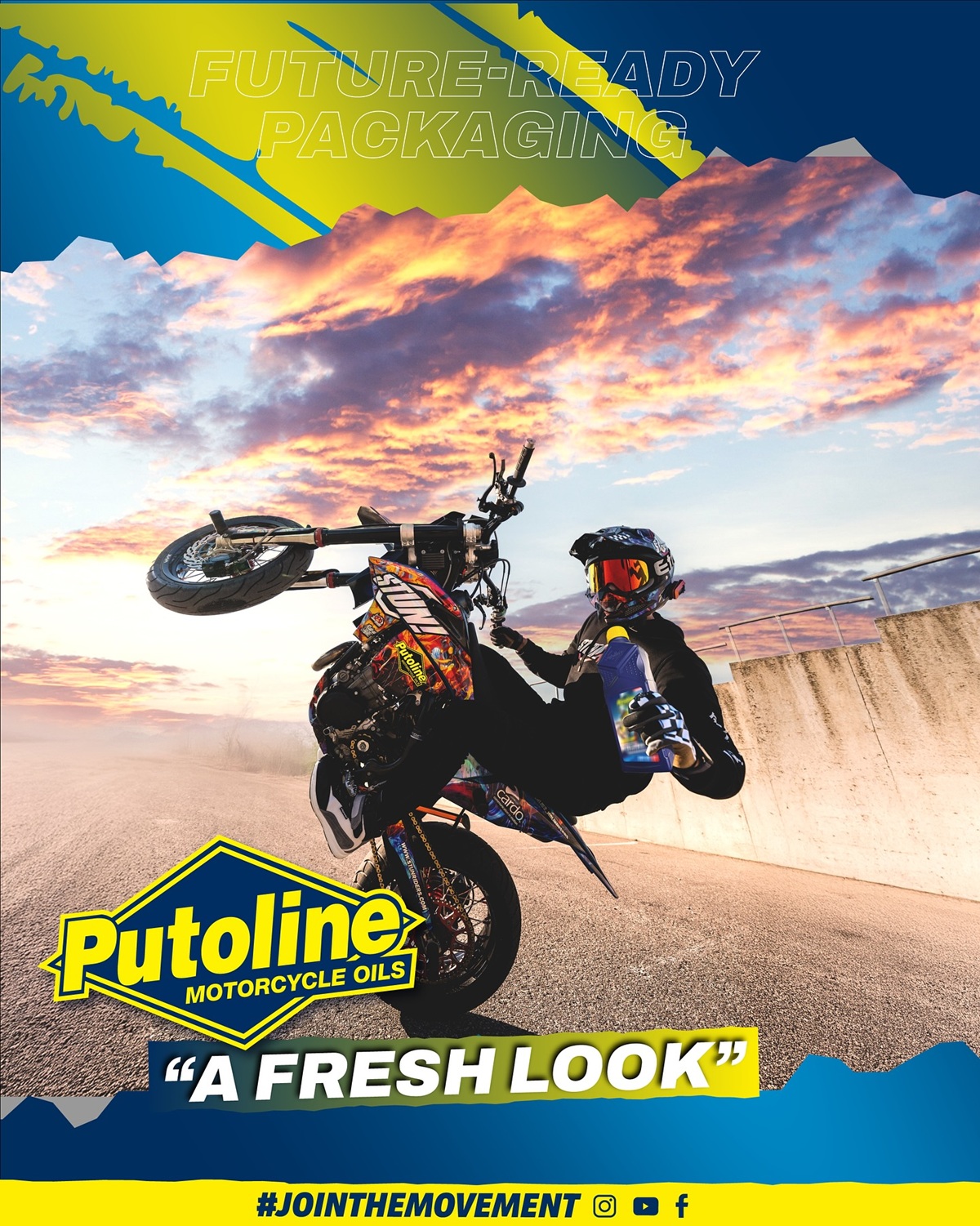 De nieuwe designs geven perfect weer waar Putoline Oil voor staat, namelijk het exclusieve smeermiddelen merk voor ROAD en OFF ROAD. “Putoline Oil wordt het afgelopen decennium niet meer gezien als alleen ‘het crossmerk’, maar als hét smeermiddelen voor motoren en andere powersports. Daar hoort een visueel design bij dat sterk en consistent oogt op internationaal niveau.